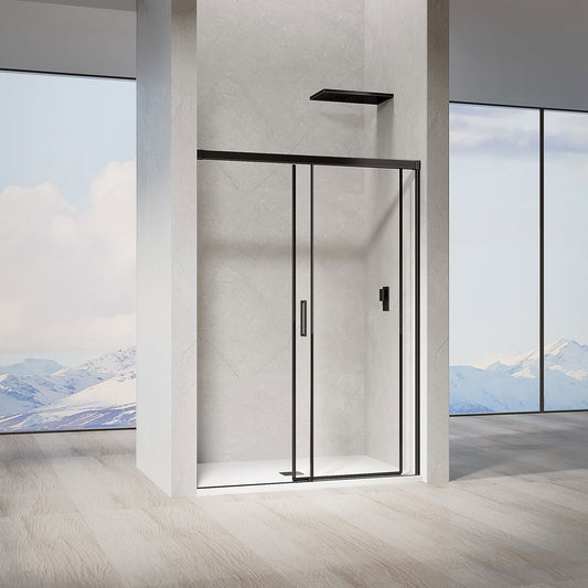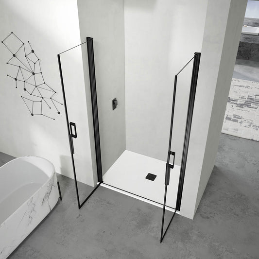 Porte de douche ouverture battante à 2 volets en noir mat hauteur 200cm
