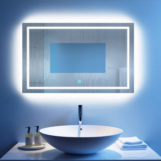 Miroir LED pour salle de bain avec bouton tactile - pose verticale ou horizontale
