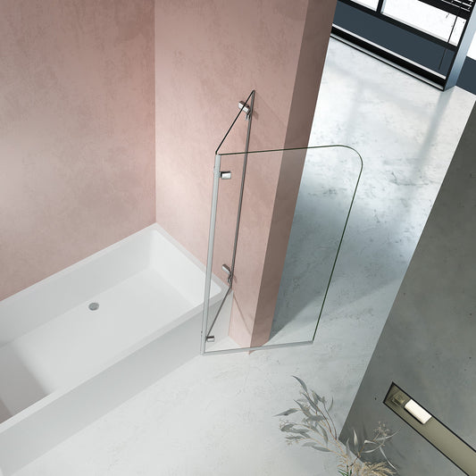 Pare-baignoire pivotant-pliant à 2 volets en verre trempé 5 mm transparent anticalcaire