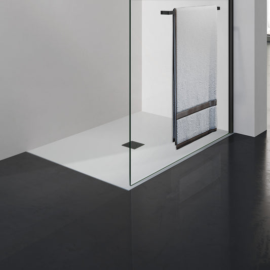 Paroi de douche noire avec porte-serviette, barre de fixation et profilé mural