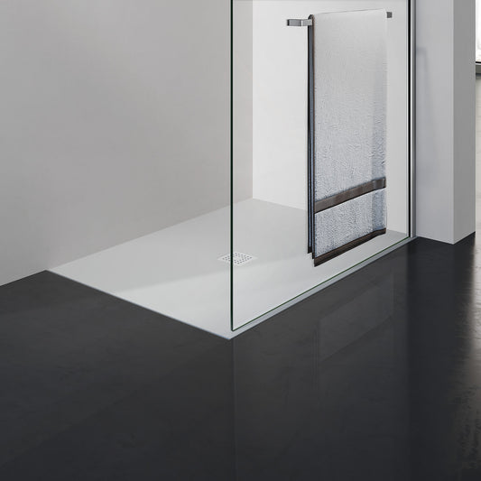 Paroi de douche avec porte-serviette et barre de fixation en aluminium chromé