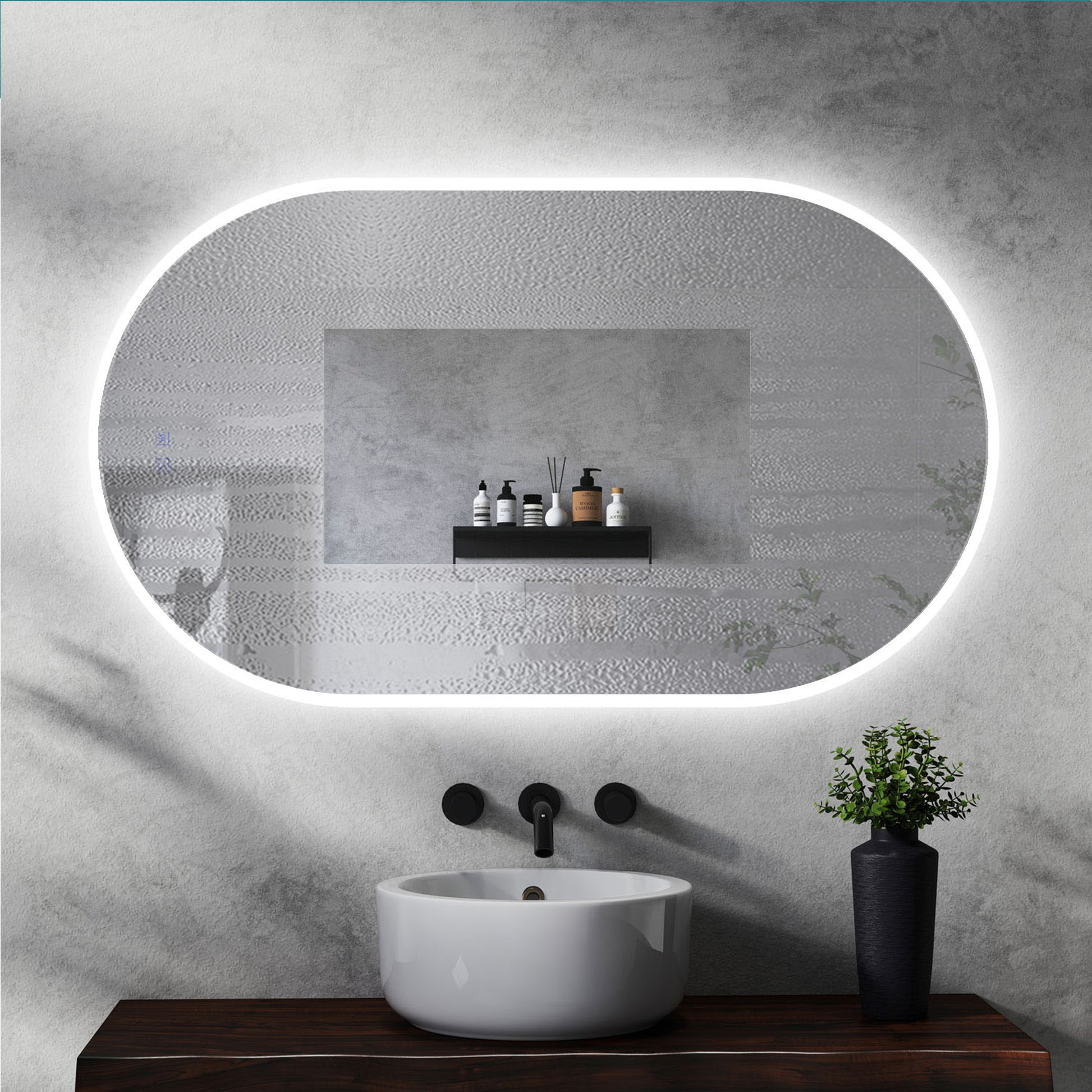 Miroir de salle de bain ovale avec bouton tactile et fonction antibuée